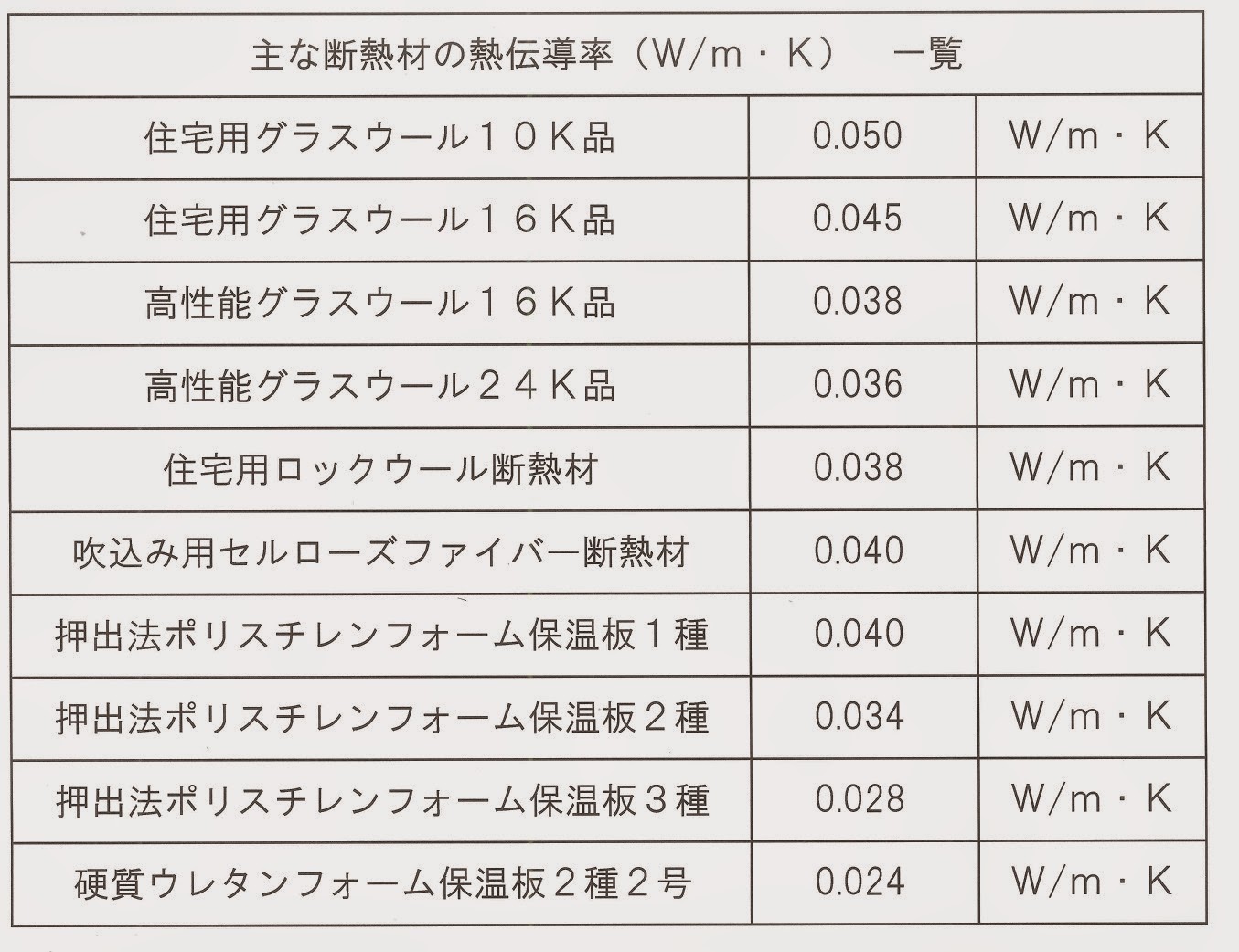 ロック ウール 熱 伝導 率