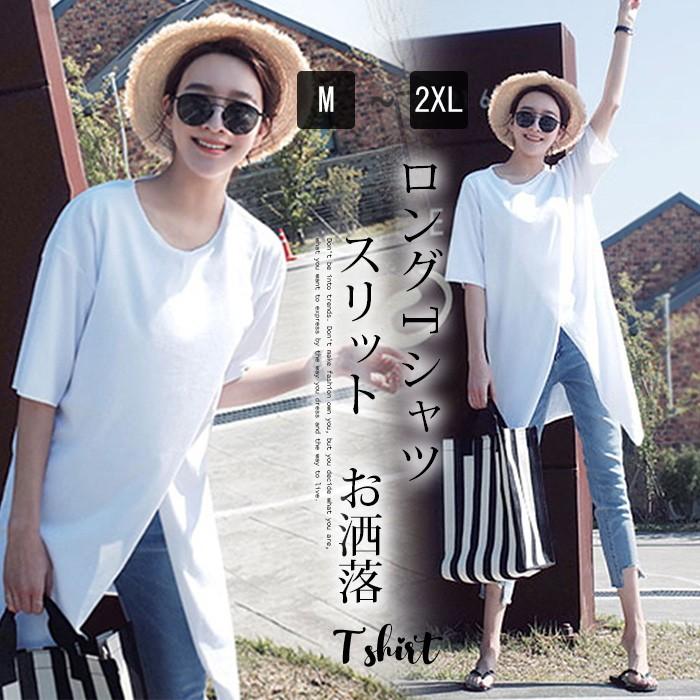 ロングtシャツ 半袖tシャツ レディース Tシャツワンピース 春夏 無地 クルーネック スリット おしゃれ カジュアル 送料無料 3色の通販はau Pay マーケット ヨシコ商事