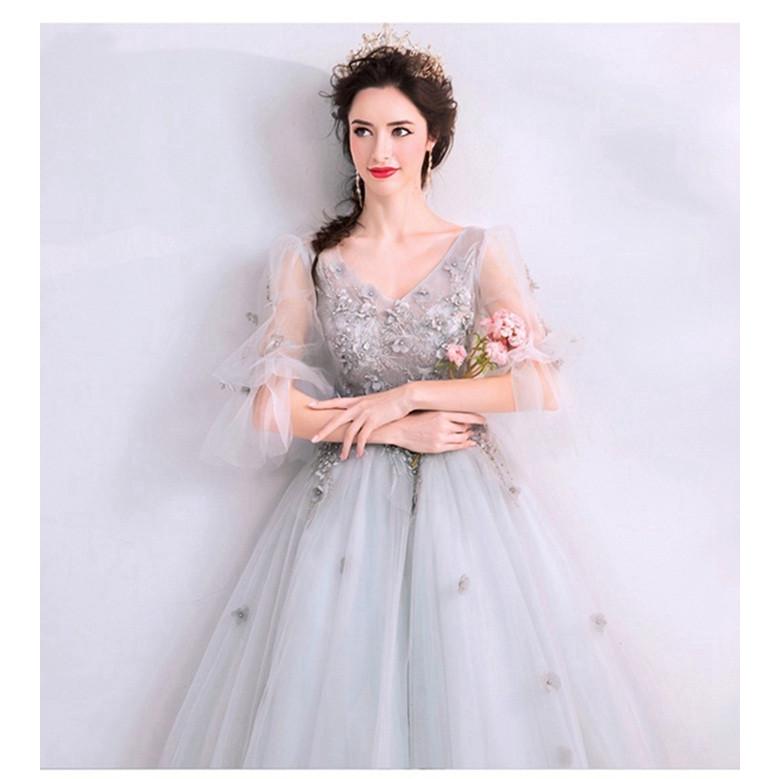Amazon 可愛い ウェディングドレス 二次会ドレス 結婚式 プリンセスラインドレス 姫系 パーティードレス 新婦 挙式 ブライダル ドレス 袖あり 発表会 ロングドレス ホワイト 白 パーティードレス 通販
