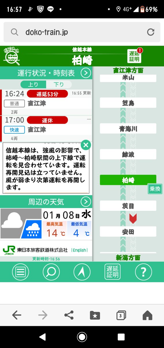 柏崎の人 On Twitter 越後線 柏崎 吉田 上下 強風により運転見合せ 信越線 柿崎 柏崎 上下 運転見合せもしくは運休